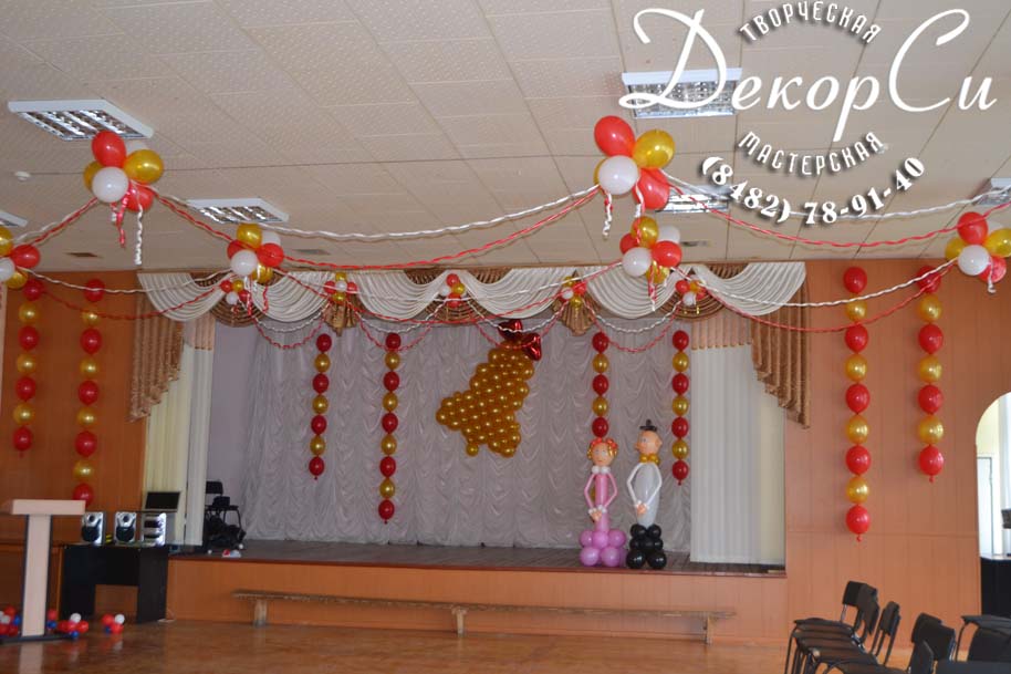 - украшение музыкального зала на выпускной в детском саду